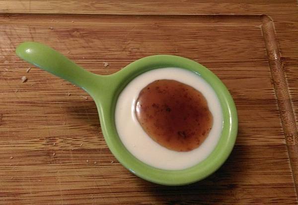 葡萄果醬拌入原味無糖優格中~